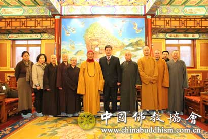 2013年3月11日,台湾灵鹫山开山宗长心道法师一行7人拜访中国佛教协会,受到中国佛教协会秘书长王健先生、副秘书长演觉法师的热情接待。