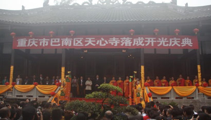 2013年3月28日,重庆市巴南区天心寺举行盛大的落成开光庆典。为期三天的禅茶文化节同时开幕。重庆市民宗委、统战部、巴南区委及民宗局相关领导出席庆典并分别致辞。
