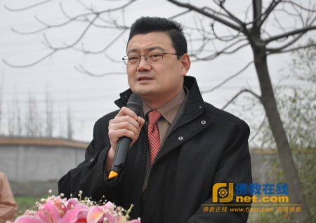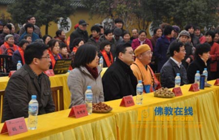 武进区委统战部副部长、武进区民族宗教事务局蒋金标局长致辞表示,自仁单法师等僧众进驻慈山寺以来,慈山寺各项工作得到了健康有序的发展,当天奠基的大涅盘山极乐世界建筑群构思严谨,气势恢宏,希望慈山寺僧众以此为契机,正确引导广大信众爱国爱教,弘扬佛法,同时要认真学习领会‘十八大’精神,为佛教文化的对外交流多做贡献。蒋金标局长并对慈山寺的今后工作提出了三点希望。