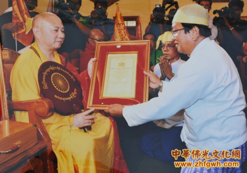 中国佛教协会副会长明生法师荣获缅甸政府颁发2013年度宗教勋章