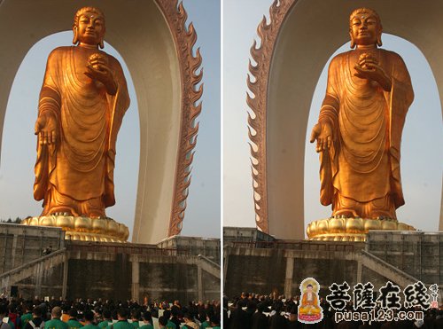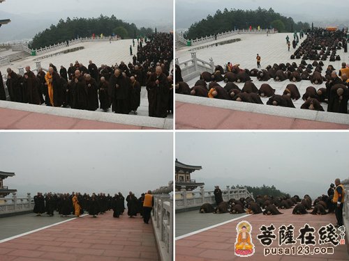 下午两点四十分,行脚的队伍顺利抵达东林寺净土苑。稍作休息,直登拜佛台,在大安大和尚的带领下三步一拜拜向阿弥陀佛。拜到中途,天空突然放晴,灿烂的阳光与阿弥陀佛紫磨真金色交相辉应,众人皆大欢喜,在愉悦之中来到阿弥陀佛的脚下。最后,大和尚领念回向发愿文,四众弟子法喜充满。行脚、礼佛圆满结束。