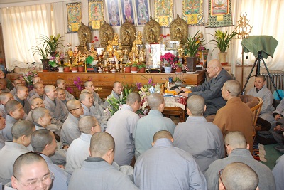 师父上人鼓励新一届知事说:我们要继承老法师的遗志——爱国爱教、学戒持戒;努力建设美丽的“三加一”,以修道为根本、教育为保证、慈善为方便引导众生觉悟人生,和谐社会。宣誓后,知事们有幸与梦参长老座谈。长老慈悲开示:“大家在为常住和众生服务的同时,不要忘记出家人的本业,要记得断烦恼,了生死……