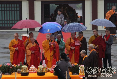 湖南大药王寺,湘城梵刹,地处要道,善信云集,不立殿阁,僧侣善信无地修持,不树宝像,凡俗世人无由生信,故经云:庄严佛土者,即非庄严,是名庄严。盖在造殿树像,无非尽在广开大众之慧眼,演法说教,尽在启建无为之性德,造殿树像,乃僧人本份,开宗演法、是佛家常务、今朝奠基,龙天欢喜,惭愧学人,能与大众一起同逢如此之胜因,乃是宿世植种善缘所至,方能与四方善信大德同逢如此之胜会,共襄善举,此等善举,诸佛颜开,龙天欢喜。