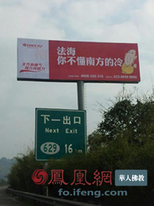 格力空调涉嫌戏谑佛教的路牌广告(图片来源:凤凰网华人佛教)