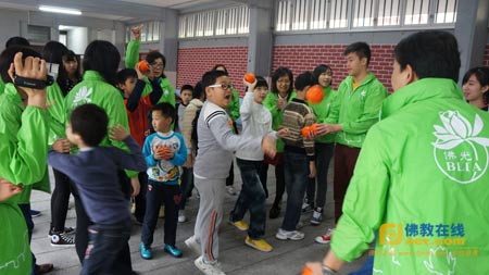 与培幼院小朋友一块玩游戏