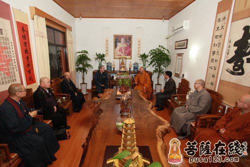 四祖寺首座明基法师、监院崇谛法师代表寺院常住在山门迎接访问团一行,随后带领大家依次参观了寺院各主要殿堂,并就四祖寺历史和现今的发展情况向大家进行了详细的介绍。