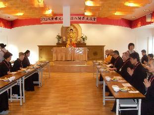 晚7时30分开始正授,求戒者集聚大殿,4名戒子代表迎请欧洲总住持满谦法师担任和尚尼,随后庄严的戒会就在香赞梵音声中展开。满谦法师开导戒法,说明八关斋戒的内容及意义,并礼请诸圣证蒙受戒、带领戒子发露忏悔,并以此忏悔功德,得受清净戒体,回向法界一切众生。正授过后,觉彦法师也带领戒子们在大殿跑香、做软身操,然后禅坐。大众摄心一念,把心专住,不浪费分秒,精进修行。