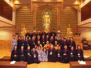 16日早斋过堂,满谦法师提醒大众在佛门里,做任何事情,包括吃饭喝水,都是修行,所以过堂也是五堂功课之一。早斋过后,满谦法师讲解“八关斋戒”的意义和功德。满谦法师引用几则佛典故事,讲述受持八关斋戒的殊胜,大众听得津津有味,对受持八关斋戒的修持更增长信心。讲戒过后,教授阿阇梨觉彦法师主持经典导读,开示《般若波罗密多心经》。法师也提醒大家要学习观自在菩萨,在生活上处处、时时观身观心自在。 午斋过堂后,教授阿阇梨妙元法师主讲《百法明门论》。