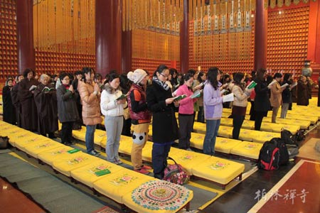 北京大学禅学社、国学社,清华大学茶学社、清莲诗社等高校社团学子一行随众上殿