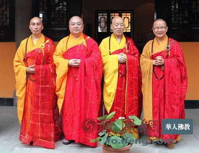 海山老和尚、果东法师、素全法师、觉行法师在什邡罗汉寺方丈院合影留念(图片来源:凤凰网华人佛教)