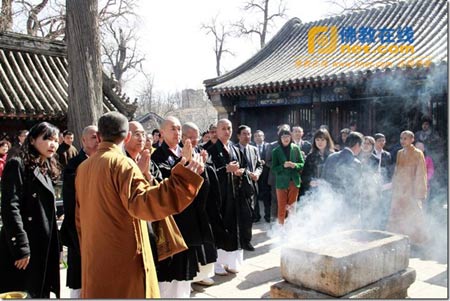 日本阿含宗代表团一行到北京龙泉寺大殿上香