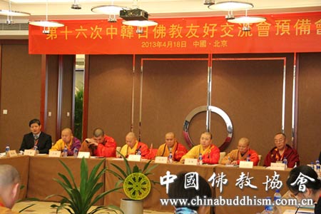 2013年4月18日上午9时,第十六次“中韩日佛教友好交流会”预备会议在北京隆重举行,预备会议讨论和签订举办第十六次“中韩日佛教友好交流会”协议书。会议商定:第十六次“中韩日佛教友好交流会”将于2013年11月26日至28日在中国海南省三亚市举办,主题为“自然灾害后的心灵救助”。
