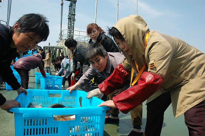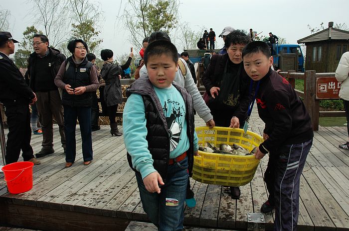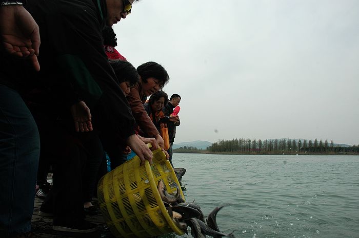 8-太湖湿地公园放生现场,众多游客和小朋友们也加入放生队伍