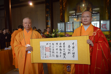向韩国法师颁发阿阇黎委任状(图:禅文化网)
