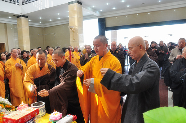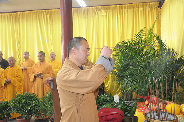 栖霞古寺首座曙光法师(中)在荼毗法会