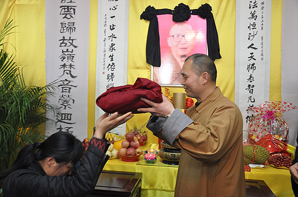 达道长老家人依照达老遗嘱将百年袈裟回归栖霞古寺