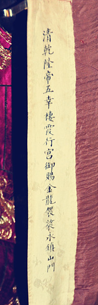 达道长老示寂前,将一件自己保持了60多年的镇寺袈裟重新捐回栖霞古寺。据介绍,这件印有“清乾隆帝五幸栖霞行宫御赐金龙袈裟永镇山门”字样的袈裟是1949年, 当时栖霞寺志开法师秘密嘱咐达道法师带往香港。60年之后,应达老遗嘱,将这件传世之宝重归栖霞。根据史料记载, 被誉为“金陵第一明秀山”的栖霞山,乾隆帝六下江南,五次驻跸栖霞乾隆行宫。