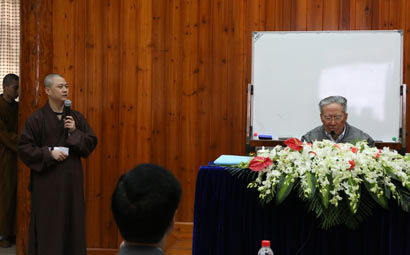 可祥大和尚主持讲座(图片来源:宁波七塔寺)