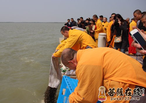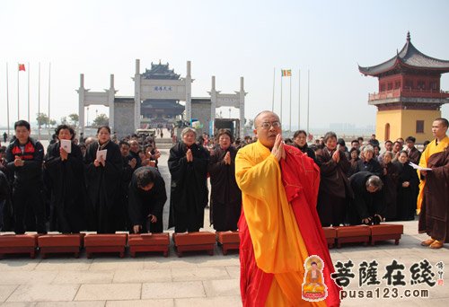2013年4月4日上午,寒山寺弘法部和重元寺禅修中心在阳澄湖畔举行“清明孝亲追思”放生法会,善男善女400人参加,法会由重元寺当家光瑞法师主持。