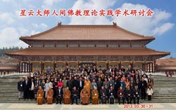 由南京大学中华文化研究院主办,佛光山人间佛教研究院协办的首届“星云大师人间佛教理论实践学术研讨会”,于2013年3月30日上午在宜兴大觉寺开幕。与会贵宾有佛光山开山宗长星云大师、佛光山人间佛教研究院执行副院长慈惠法师、南京大学中华文化研究院院长赖永海教授,以及来自两岸40余位学者及200余位南京大学禅学国班学员共襄盛举。