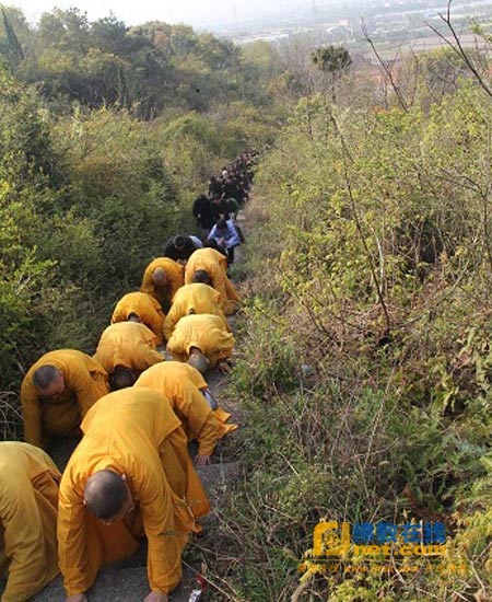 浙江慈溪伏龙禅寺举办观音圣诞三步一拜朝山法会