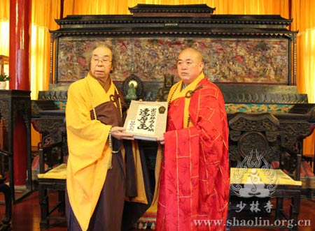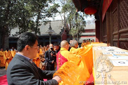 日本宗教画法学院院长平冈嘉卫门向河南少林寺捐赠藏书