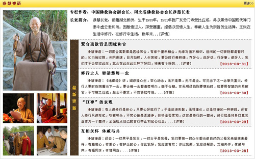 净慧长老在病榻上口示侍者,通过短信通知媒体,暂停“净慧禅语”。“余以老病交加,不能用心,加之索阅短信人数日增,经费不堪负担,故"净慧禅语"暂告停发。他日病癒缘熟,或当再续禅缘。过去两年多来东语西话,读者雅谅包容,不胜感谢之至。老朽净慧合掌。”