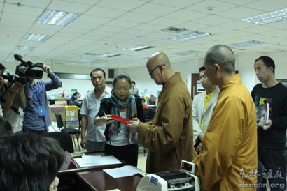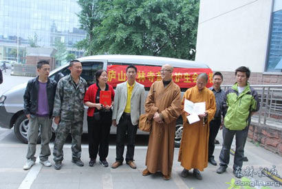 拿到捐款收据和荣誉证书后,四川省慈善总会的有关人员接待了我们,对远在江西的东林寺能够作出这样快速实际的援助表示赞叹和感谢,并转告我们,先一天送来的毛毯和毛巾已于昨晚送抵雅安灾区。我们希望来自佛门四众弟子捐助的物资不但能够温暖灾区人民的身体,更能温暖他们受伤的心灵。