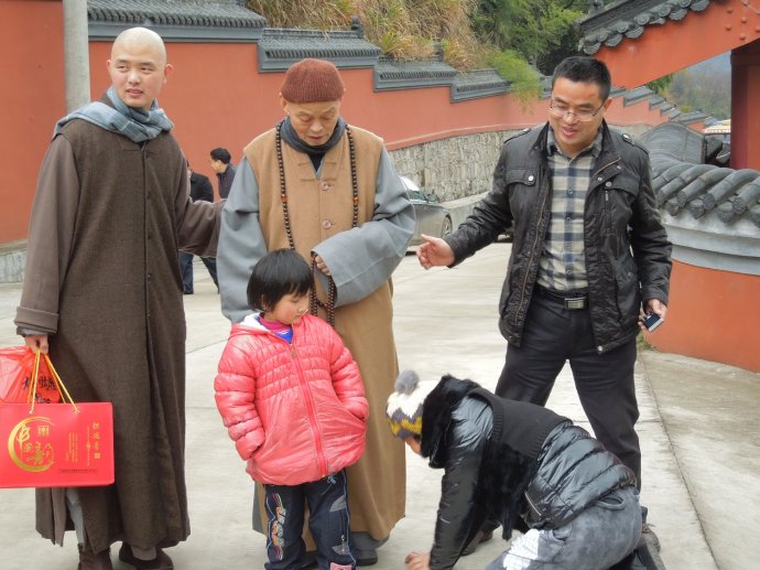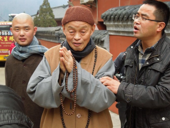 我像一粒小铁屑遭遇强大的磁场,倏地被吸附到老和尚身边。我迅速贴上去拍了几张照片,然后不顾路上的灰尘,趴在地上便拜,一边说:“师父,我读过您好几本书呢。”只听老和尚亲切地说:一拜啊。我好像很快拜了三拜,然后,又不由自主地跟着往方丈室方向走。