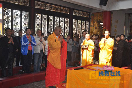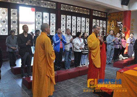 2013年4月27日上午,江苏省无锡市南山寺隆重启建《贝叶经》奉供瞻礼法会,来自当地居士、信众300余人参加了法会。