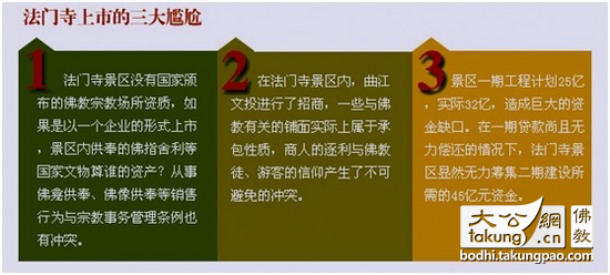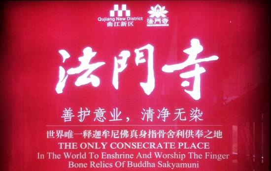 在法门寺景区的宣传海报上,“善护意业,清净无染”八个字赫然印入眼帘。这句出自《无量清净平等觉经》的经文,仿佛传递着佛门的清凉信号。为将法门寺景区打造成传播佛教文化的合法机构,曲江集团也开始学起了佛教用语。怎样能让消费者将法门寺景区,这一捆绑了寺院的休闲度假村,认知为历史上的那座具有千年文化的法门寺,曲江新区的开发商可谓是煞费苦心。