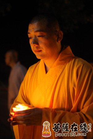 传灯正式开始(图片来源:菩萨在线 摄影:慧悟)