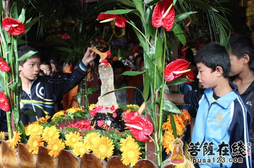 少林慈幼院的孩子们浴佛(图片来源:菩萨在线 摄影:邹相)