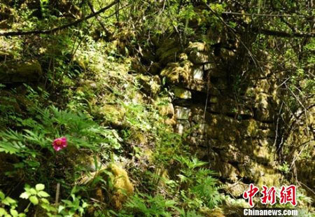 树林掩盖下用石头垒砌的城墙、房屋残墙若隐若现