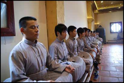 营员在禅堂里静坐学习调伏身心(图片来源:凤凰网华人佛教)