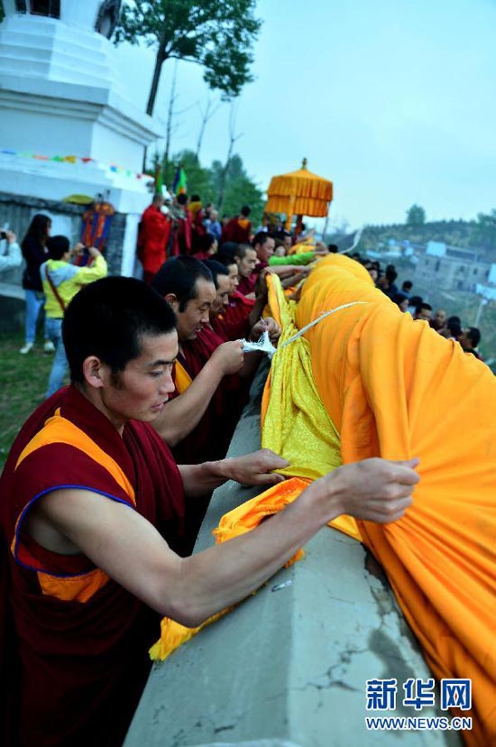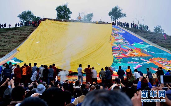 2013年5月24日,青海名寺塔尔寺举行了晒大佛仪式。塔尔寺是为了纪念藏传佛教格鲁派创始人宗喀巴大师所建,在藏区具有极其重要的地位。晒大佛每年农历四、六月两次法会时举行。意思是为纪念释迦牟尼诞生成道。涅磐和弥勒出世及宗喀巴诞生,涅磐,通过晒佛让信徒们瞻仰佛像,沐浴佛恩,并防止佛像遭蛀。