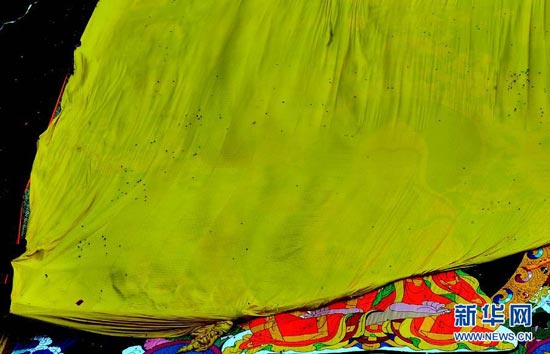 铺放在山坡上的佛像堆绣徐徐露出全貌