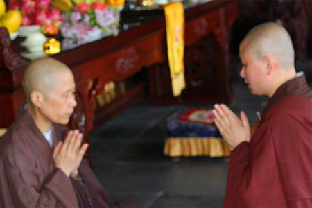 2013年5月25日(农历四月十六日)下午,浙江温州太平寺合寺尼众正式作法结夏安居。首先由住持万如法师开示安居的功德利益,婆心切切的话语对于常住的学僧来说自然是一种增上,对于新来安居的同学而言,更具有不同寻常的意义。开示结束后,大众正式作法,同礼韦陀菩萨,祈求菩萨加被,九旬安居无诸魔障,道业增上。