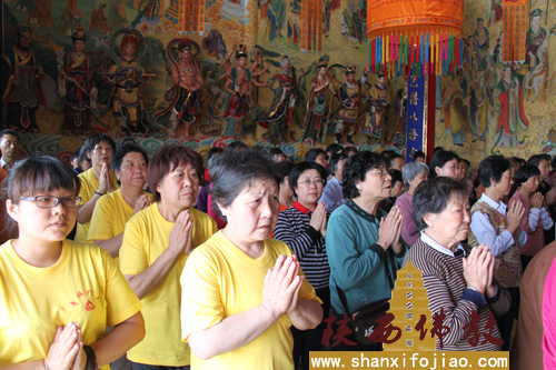 信众居士合掌观听 共沾法喜