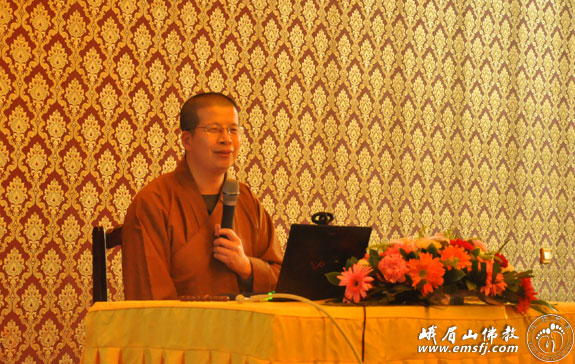2013年5月4日上午,南京大学博士、清华大学博士后、峨眉山佛学院研究生导师圣凯法师应邀在大佛禅院五观堂作了一场题为《建设中国佛教的使命、宗旨与道路》的讲座。讲座由峨眉山佛学院教务长法源法师主持,峨眉山佛学院全院师僧到场聆听。