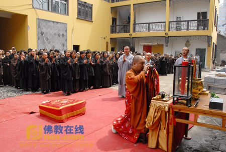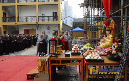 光孝寺住持法空法师率全寺僧众举行戒台殿上梁封顶仪式