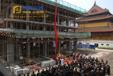 江苏泰州光孝寺举行戒台殿上梁封顶仪式