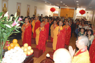 费城东北区大觉禅寺26日举行寺院落成暨佛像开光大典,包括纽约普照寺住持修觉长老、美国佛教联合会会长瑞法法师、中国人民大学教授唯善法师等十几位法师主持开光仪式,美东各地200余善信与会,同沾法喜。大觉禅寺系费城华裔社区第五座佛寺。