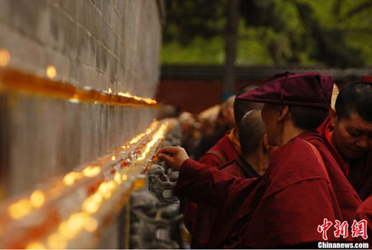 2013年5月13日,来自世界各地的信众聚集山西五台山,为文殊菩萨过“寿诞”。(图片来源:中新网)