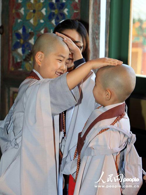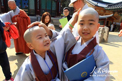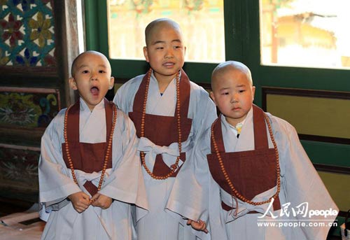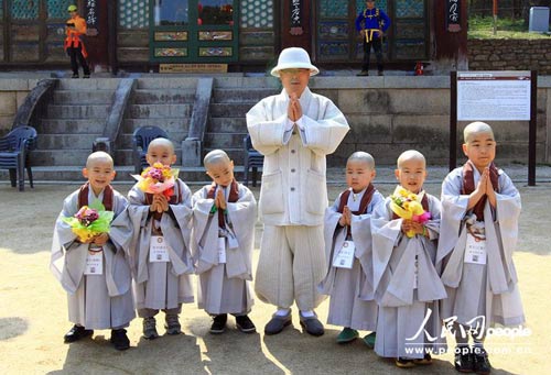 韩国儿童剃度短期出家迎接佛诞节 萌态十足
