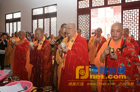 诸山长老为报慈寺钟鼓楼、法堂、综合弘法大楼落成洒净