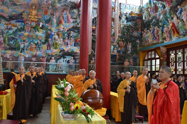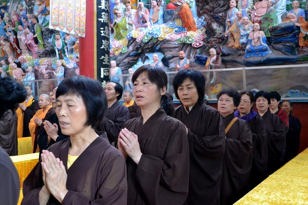 回向:佛法僧宝、天龙鬼神,次复普熏遍周沙界、亲怨等益、恩有咸资,凡一切以均沾,尽十方而兼济,仰冀三尊允鉴、万圣垂光,宏开普度之门,大启无遮之会。