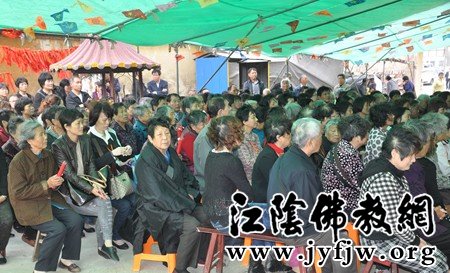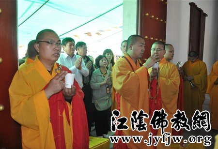 江阴市周庄镇人民政府统战科刘复如先生,周庄镇长南村党支部书记孙掌福先生,江阴市佛教协会常务理事、江阴佛光寺住持风悦法师,东平寺重建领导小组组长孔甫生先生,东平寺监院觉勇法师,周庄镇、长南村相关领导和来自上海、浙江、苏州和江阴本地的居士信众500余人参加了庆典。
