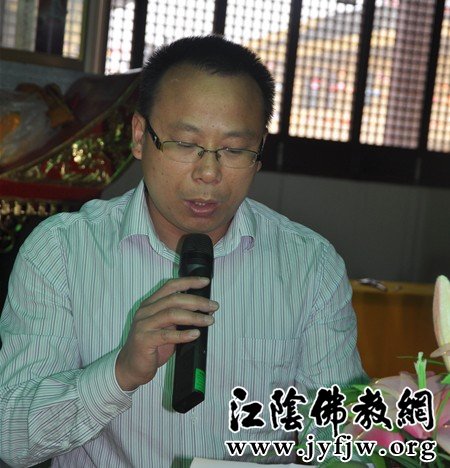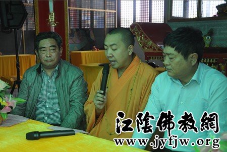东平寺重建领导小组组长孔甫生先生首先致欢迎词,江阴市佛教协会常务理事、江阴佛光寺住持风悦法师向东平寺天王殿落成暨全堂佛像开光表示祝贺,祝愿东平寺在觉勇法师的主持下法务昌隆,蒸蒸日上。江阴市周庄镇人民政府统战科刘复如先生作重要讲话,刘复如先生高度赞扬了东平寺在修复重建工作中取得的可喜成绩,希望觉勇法师勤修三学,带领广大居士信众爱国爱教,为弘扬佛教文化多做贡献,早日把东平寺建设好、完善好,让东平寺这座古老而又充满生机的寺院成为江阴滨江花园城市里的一颗璀璨明珠。