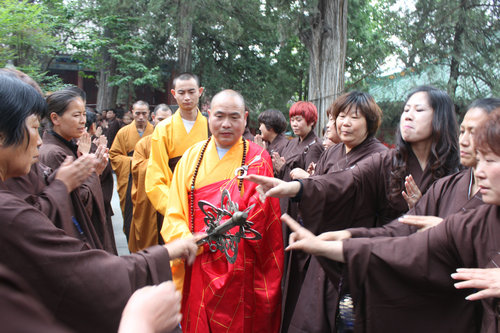 三坛大戒法会结束后释永信方丈和皈依、受戒俗家弟子合影留念